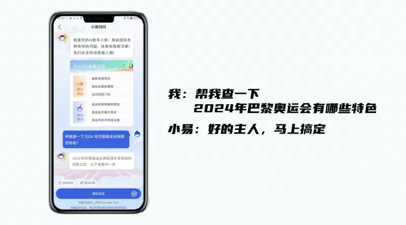 此外,最新版本的声智APP-小易问问功能新增热点资讯问答能力,在 2024 巴黎奥运会期间还推出了奥运特别版,不仅能进行更加自然的实时对话,还能提供即时的赛事信息,用户可以和小易一起,随时随地观赛、追赛。