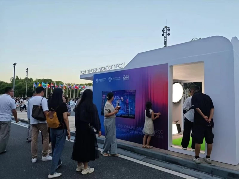 而就在“永恒的巴黎圣母院”穿越时空沉浸式VR之旅正式开幕的第二天,恰逢第七届中国国际进口博览会倒计时100天,中国国际进口博览局、国家会展中心(上海)与上海广播电视台共同举办的“2024青浦四叶草之夜音乐节”在国家会展中心(上海)举行。随幻科技携手广电制作,在音乐会现场入场处,为观众设置了AI打卡点,利用随幻AI SPACE沉浸式打卡系统让现场观众在“赛博魔都”的虚拟场景中与音符共舞,感受科技与艺术的互动对话。