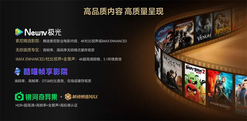 优秀的硬件需要高品质的内容支撑才能展现真正的价值,索尼电视积极与国内优质视频平台合作,不断扩展支持多平台,高码率,高帧率的高品质内容,还开辟了索尼电视用户独享的“索尼精选影院”,为资深电影爱好者和专业用户,提供海量严选4K超高清影视剧集,让每一次家庭观影,都能成为情感共振的沉浸感官盛宴。