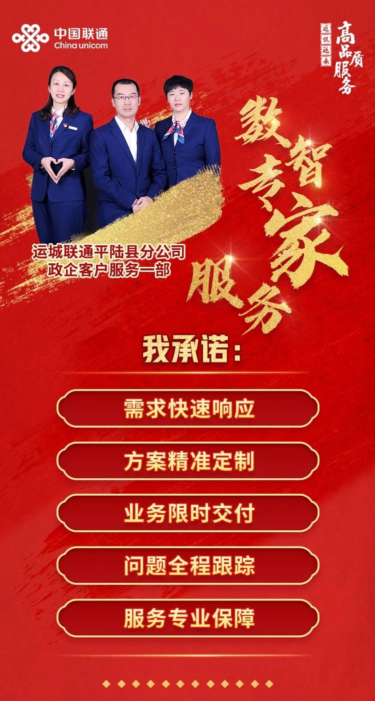 #联通好服务 用心为客户#山西运城联通平陆县分公司政企客户服务一部全体员工,始终保持任劳任怨、爱岗敬业的工作作风。这支由三人组成的团队在政企客户经理的岗位上稳步向前,通过学习与反思,不断积累服务经验,始终把客户利益放在首位,做到让客户舒心、放心、省心的“三心”服务。
