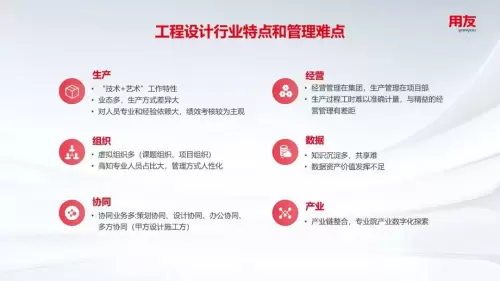 随着数智化转型的不断深入,工程设计行业正站在一个新的起点上。用友作为数智化转型的领航者,我们深信,通过不断的技术创新和理念更新,企业将能够更好地应对未来的挑战,把握机遇,实现跨越式发展。在未来,期待与更多的工程设计企业携手合作,共同探索数智化转型的无限可能,共创一个更加智能、高效、可持续的行业未来。