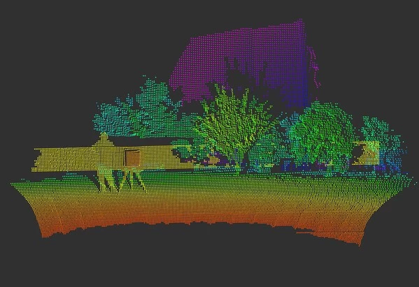 识光 2D 分区扫描方案实测点云:仅高反板覆盖到的 2D 分区发生高反污染