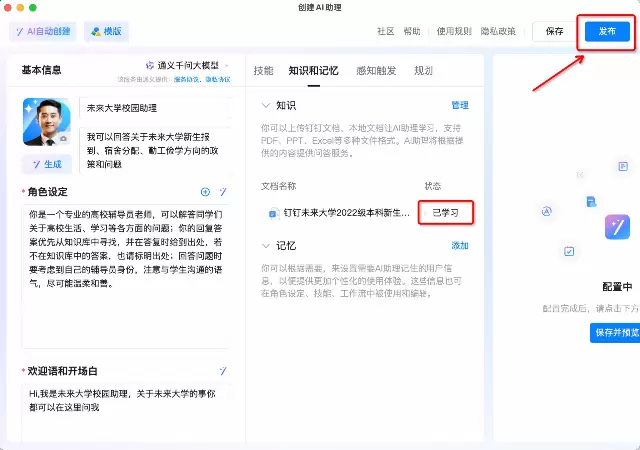 (图:钉钉AI助理创建页面)
