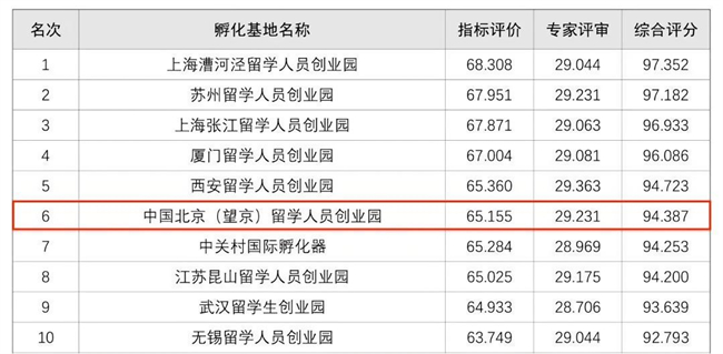 望京留创园再创佳绩:全国前六,北京第一!获评“优秀园区”!