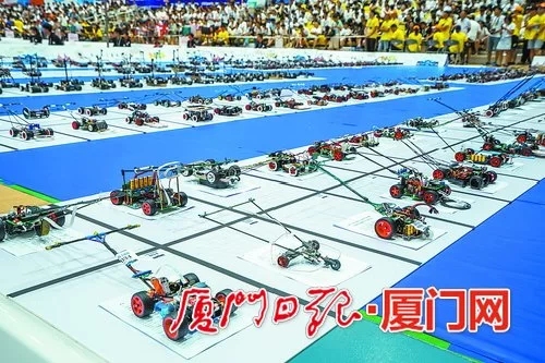 千名大学生带着400多辆会爬坡、会下棋、会过障碍、会会车的小车,聚集厦大嘉庚学院,看看谁能跑赢谁。