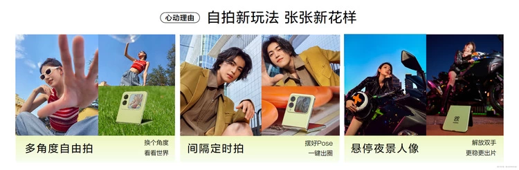 nova Flip支持后置5000万多角度悬停拍照,更有间隔定时拍,自动连拍一键出圈。