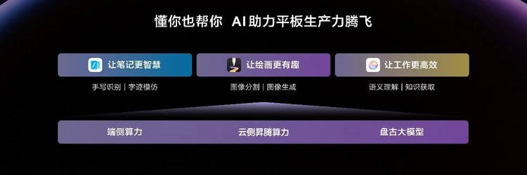 全新华为MatePad Air,有AI的Air更快了。基于盘古大模型和昇腾算力,开启平板智慧体验新时代。小艺智慧助手提供了小艺帮写、小艺文档助手、小艺资讯助手等功能;华为笔记和天生会画App也通过AI拼音联想、AI手写编排以及AI人像练习等具体功能,助力学研办公创作更高效。