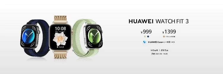 华为WATCH FIT 3小方表三款夏日新配色清新来袭,正式售价999元起