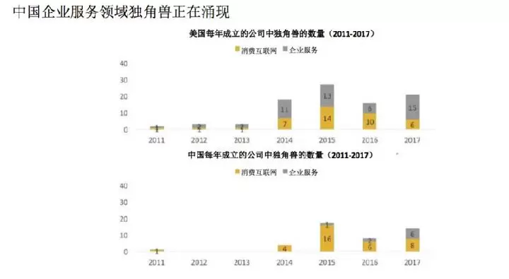 2、中国企业服务领域依然有机会,独角兽正在涌现