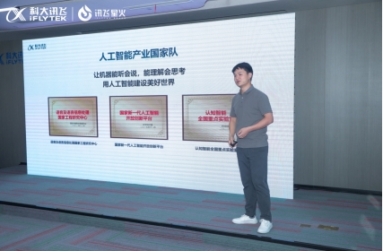 星火快答产品方案总监施凯则展示了星火快答在不同场景下的优势和价值,该产品通过讯飞星火大模型、虚拟人、智能语音等技术,实现了智能展示及数据快答场景的快速应用。