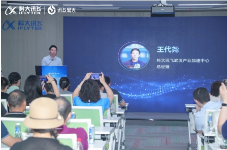 活动伊始,科大讯飞武汉产业加速中心总经理王代尧代表科大讯飞向嘉宾表示欢迎和感谢,并发表致辞。他强调,人工智能在推动科技革命和产业变革中起到了关键的作用,而科大讯飞致力于转化科技成果,推动产业升级,助力社会发展。落户武汉后,科大讯飞也一直积极构建华中地区开放、合作、共赢的产业生态,显著提升了湖北省的开发者和应用数量。