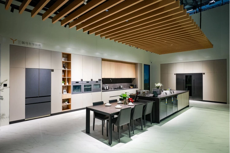 首先,三翼鸟真正意义上将美学贯通了全流程。以前,业内通常只有家电、家居或者建材的独立系列成品,很难实现相互统一。三翼鸟打破这一现状,做到整体设计线线相通、橱柜电器面面齐平,兼顾了个体美感和空间艺术。如三翼鸟智慧厨房·智界系列不仅支持完美平嵌,更在色彩、材料和表面工艺方面进行了统一设计,浑然天成。