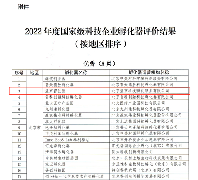 - 望京留创园连续四年获“优秀(A类)国家级科技企业孵化器”殊荣!