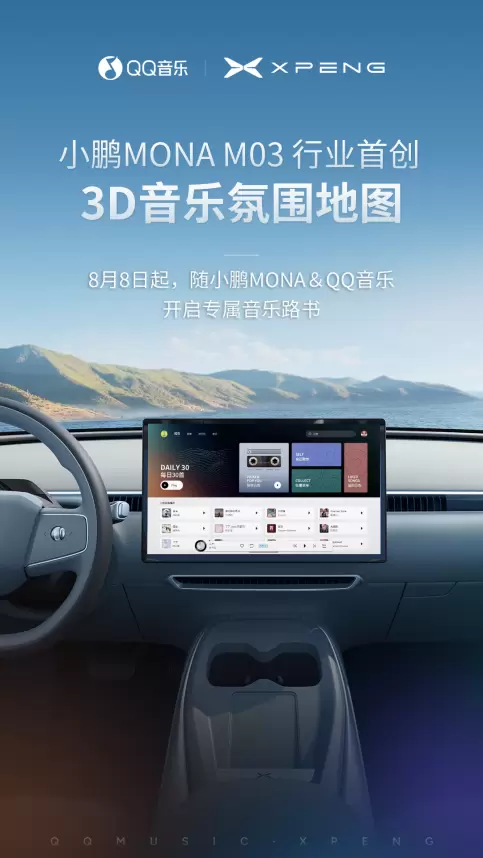 8月8日小鹏MONA M03开启预售 携手QQ音乐首创3D音乐氛围地图