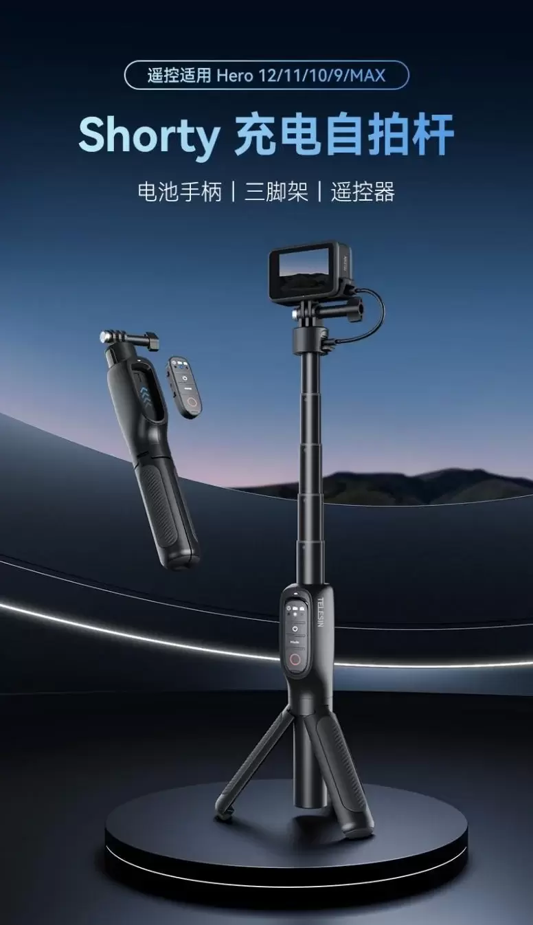 shorty充电自拍杆:内置5000mAh超大容量电池,为相机提供长达6小时的强劲续航(支持4K 30帧拍摄),让户外创作无忧无虑,尽情捕捉每一个精彩瞬间。