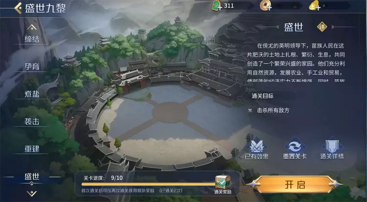 “盛世九黎”副本以重庆彭水蚩尤九黎城景区创制的史诗剧《苗祖·蚩尤》为灵感,结合游戏中英雄列传的闯关模式,巧妙地将彭水苗族史、蚩尤一生以及九黎先民不屈的信念融入其中。在闯关过程中,玩家将通过卡牌对战的形式,直面挑战和困难,通过闯关中的对话了解九黎先民们组建家园的故事,感受苗族人多彩的文化与生活方式。