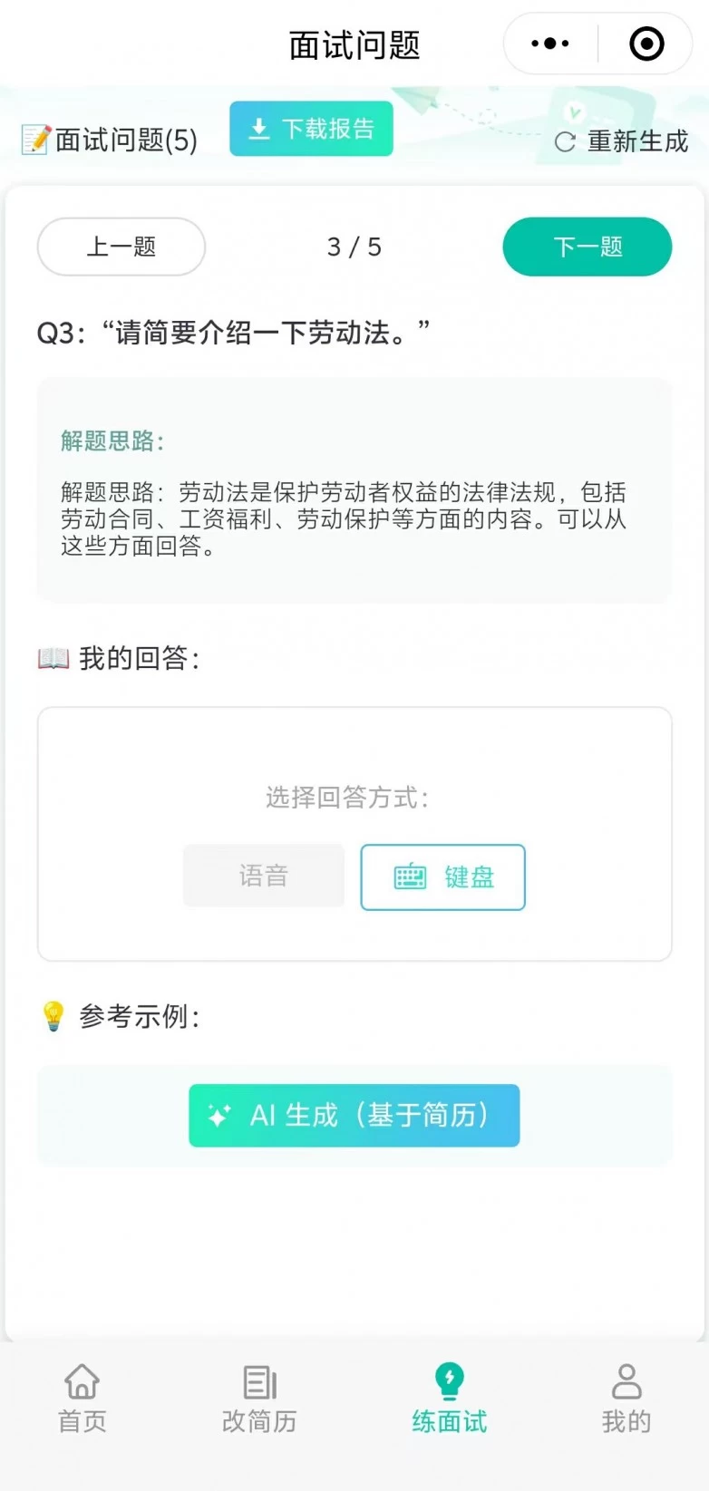 问题回答完成之后还可以下载报告,分析你回答的注意点等等,分析很详细。