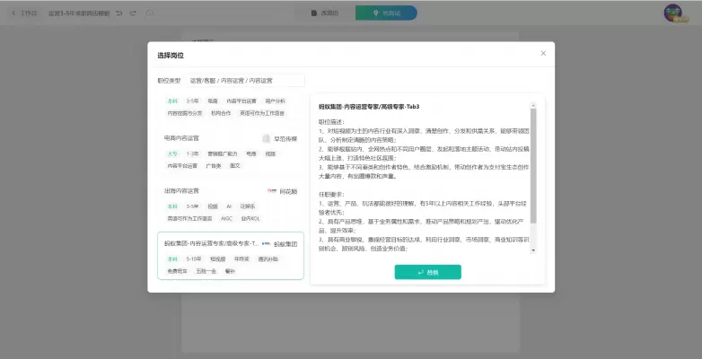 如果没有符合的你也可以自己将要应聘的岗位需求复制下来填写进去。