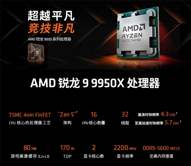 锐龙 9 9950X:8 月 15 日发售,16 核 32 线程,最高 5.7 GHz,170W,售价 649 美元(约 4643 元人民币,待官方建议零售价上线)