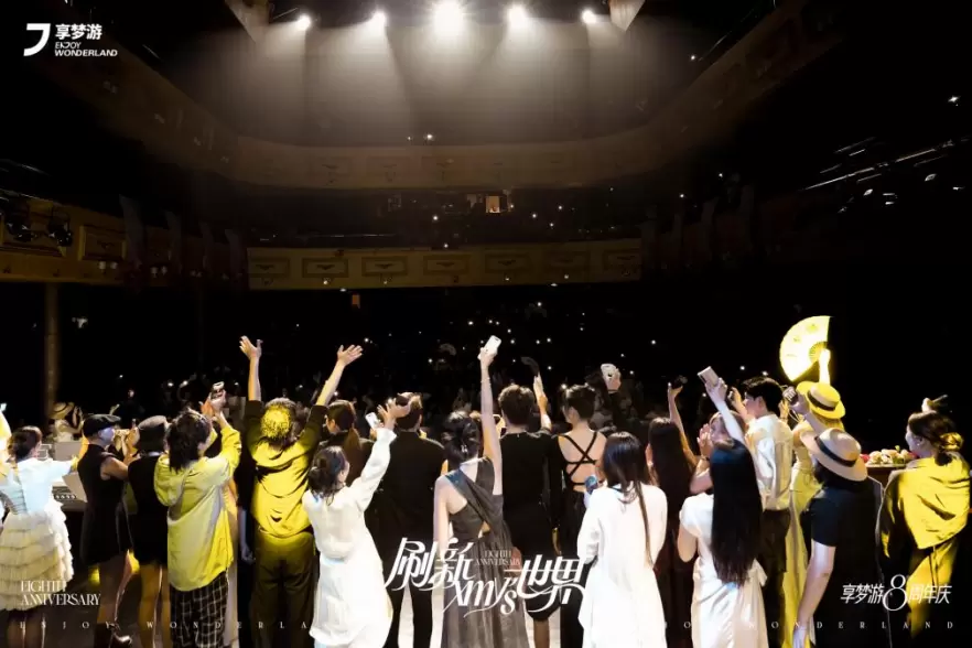 庆典在一场激情洋溢的《享梦游·马可波罗游记》开场表演中拉开序幕,舞台灯光璀璨,音乐振奋人心,现场气氛瞬间被点燃。随后,享梦游创始人彭士平先生缓步上台,发表了题为《8"气出击,无限热爱》的主旨演讲,回顾了公司从初创到如今的点点滴滴。