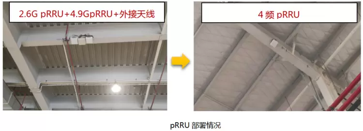本次创新试点首次在工业生产场景部署创新“4频合一”pRRU,单pRRU即可支持1.8G+2.3G+2.6G+4.9G,相比业界方案,头端数减半,部署点位减半,能耗节省30%,实现网络的绿色极简部署。