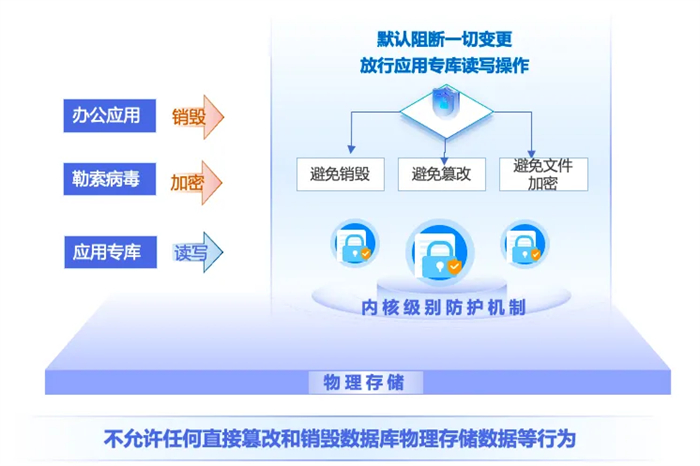 实时监控底层IO,阻断一切对于数据库物理存储数据的加密行为,避免业务中断、被迫支付高额赎金。