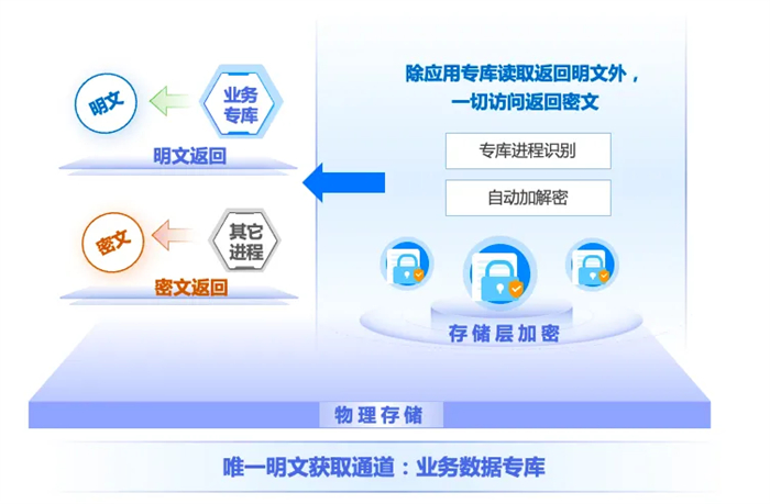 采用存储层透明加解密技术,无需改造业务应用即可实现数据加密存储,防止数据文件明文存储导致的数据泄露问题。
