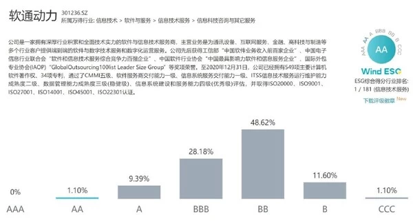 软通动力Wind ESG评级再获AA级,连续两年稳居行业第一