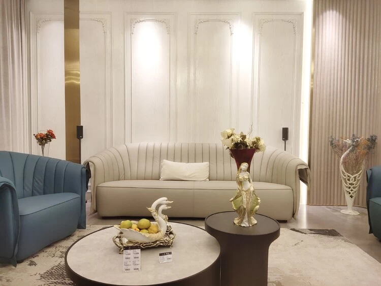 湖蓝色皮质沙发让客户一步入体验区就有眼前一亮的感觉,打破常规沙发颜色,不仅让空间焕然一新,还赋予了一份优雅。