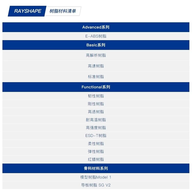 *RAYSHAPE自主研发的工业树脂材料将持续优化升级!如需获取最新版的《工业树脂全系指南》,请关注铼赛智能公众号,并在后台回复“工业树脂全系指南”,点击链接即可下载!