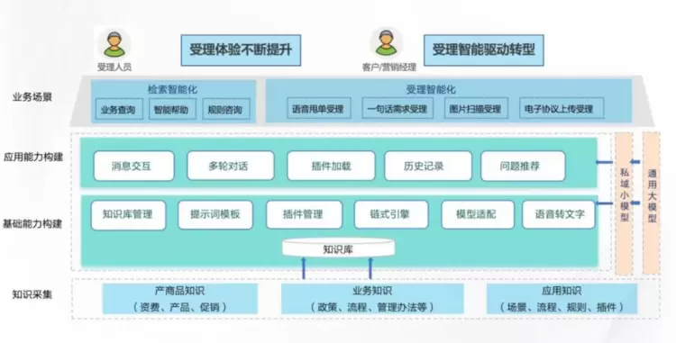 此系统将在AI模型算法和数据训练手段加持下,基于大模型自然语言理解、多模态、多任务适配和AIGC等技术特征,汇聚IT建设积累的各项专业知识,形成“政企领域大小模型”,融合OCR、语音识别、自然语言识别、内容比对纠错等能力,赋能受理人员高效完成以下场景,实现业务受理的自动化和智能化,降低业务受理复杂度,提升政企业务的响应速度、个性化服务能力和市场竞争力。