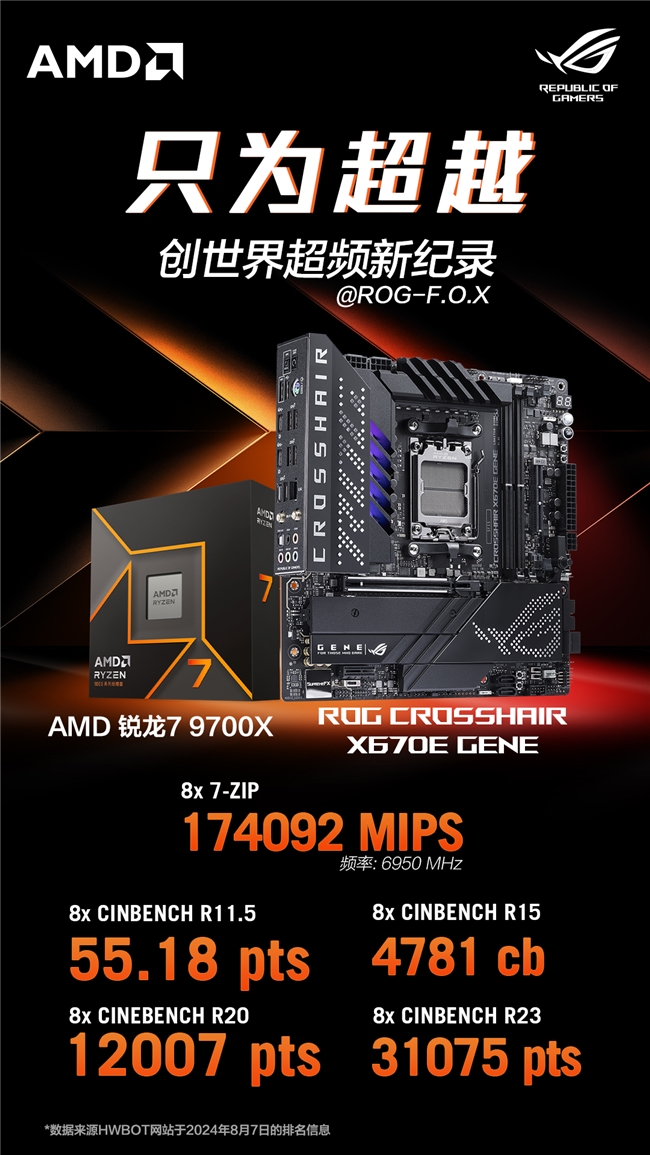 华硕X670主板打破R7 9700X多项世界超频纪录