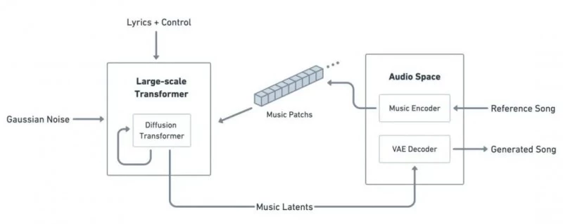 Melodio与Mureka均搭载昆仑万维新款自研DiT架构AI音乐大模型Skymusic2.0,通过大模型技术实现乐器、人声、旋律、音量、音符的一体化端到端音乐生成,支持流式生成和对文本Prompt的精准控制。