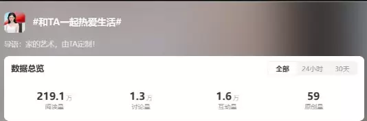 7月29日,TATA木门还上线了话题#和TA一起热爱生活,借势张天爱,官宣成为TATA木门818静音日静音大使并为中国体育健儿加油助威,该话题共联合55家知名品牌进行赋能传播,上线14天话题阅读量219.1万,讨论量1.3万,平台内累计曝光量超4600万。