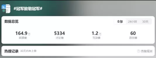 除了给王丽萍送门,TATA木门还于7月27日在微博发起#冠军致敬冠军#话题,每产生一枚金牌,TATA木门即为冠军送上一樘冠军系列磁吸静音门。话题上线15日,阅读量达164.9万,讨论量达5354,平台内累计曝光量超过3500万。