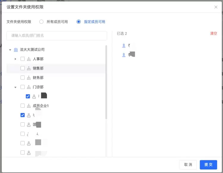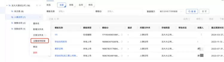 4.设置模板所属文件夹使用权限,分配给对应的人进行模板使用。