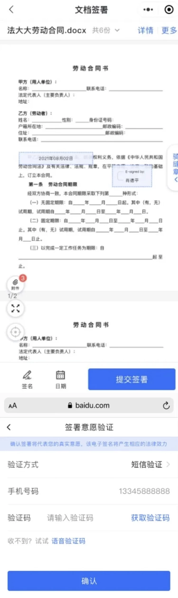 现在:通过法大大合同模板功能,HR可以在业务系统中,一键批量选择多名员工的信息进行数据填充生成合同,并在线发送给员工,员工可通过短信或者对应的手机端接收信息并填写内容,HR会实时收到反馈,确认无误后员工签字提交,公司自动落章后员工即可拿到劳动合同。