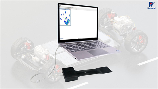 同时,新能源汽车电池发生热失控之前会分解出少量的气体,并造成电池鼓包形变,或是因外部碰撞造成电池包变形,这些都会导致电池包表面的压力发生变化。基于此,汉威科技集团还创造性地将阵列式柔性薄膜压力传感器用于PACK电池包的鼓包检测。