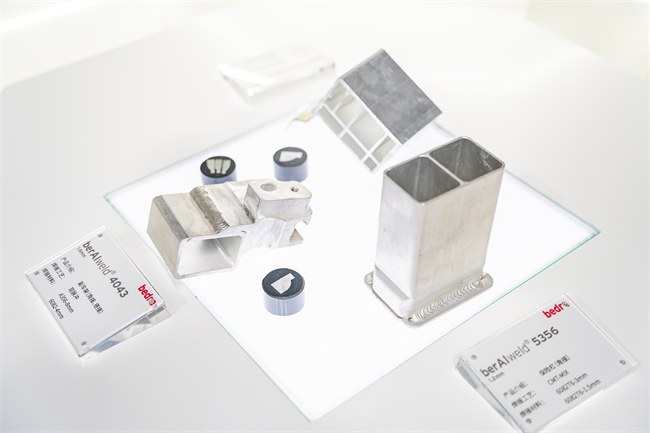 立足“铁三角”策略,此次展会,贝肯霍夫(中国)展位上展现了berAlweld®4043、berAlweld®5356等多款高性能铝焊材。berAlweld系列从材料的机理特性出发,拥有在线除气过滤、三向Y型轧制、微滑差拉拔、光亮化表面处理等九大技术支撑,满足客户在焊接方面的差异化需求,为客户提供一站式焊材解决方案。