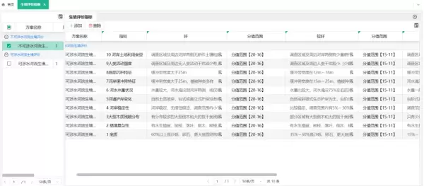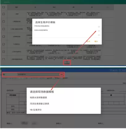为满足监测采样前对监测环境的调查,实现可以添加生境调查需要的评价模板。模板按照可涉水、不可涉水分类。