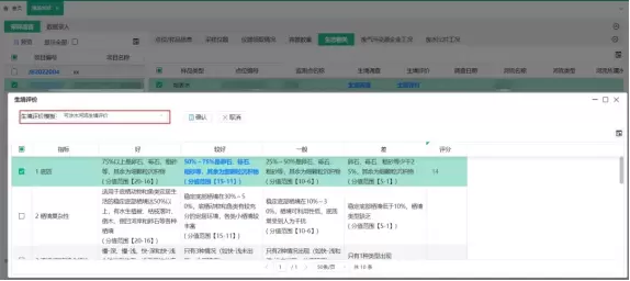 可根据调查情况选择对应的模板[可涉水、不可涉水]对其进行评价打分,同时会根据分值所在范围对信息进行高亮颜色标示。
