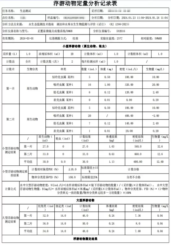 根据检测特性,将浮游植物按照定性/定量,浮游动物按照定性/定量/大(小)型,底栖动物按照定性/定量/半定量进行区分。同时可以根据检测要求进行计算公式、分析项单位、结果修约、是否需要编辑物种等维护设置。