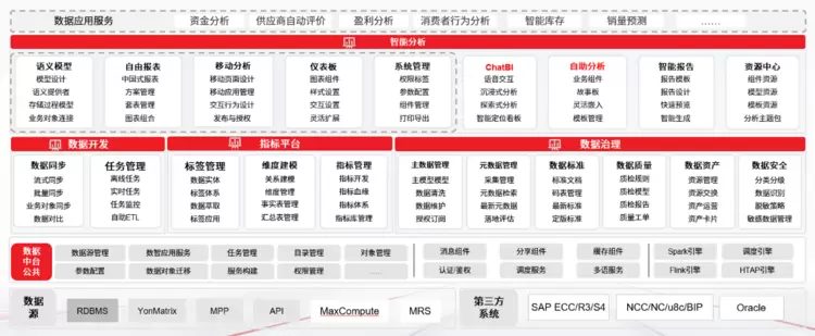 用友YonData数据平台持续升级,为企业提供一个一站式数据采集、开发、治理、应用的数据底座,具备弹性适配领先的计算引擎、建模方式和信创体系,以支持HTAP场景、向量化、库内批流一体的企业级超融合数据库为高性能引擎,支持企业数据从采集到治理再到分析可视化的端到端生命周期管理。作为企业的数据服务基石将数据沉淀为数据资产,支持数据资产入表,实现企业级数据应用服务开箱即用,支持数据治理、运营及入表管理,确保数据准确性和一致性,加速了企业数据要素价值化进程,为企业战略决策提供有力支撑。