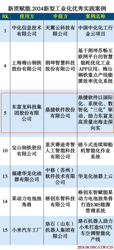 8月,DBC德本咨询发布了“新质赋能.2024新型工业化优秀实践案例”名单,“鼎捷数智化方案赋能东富龙高质量出海”实践案例成功入选。