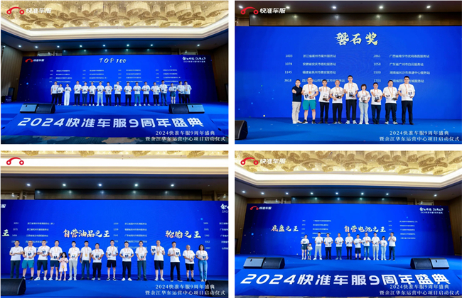 论坛交流结束后,获得TOP100服务站、新站成长奖、自营油品之王、自营电池之王、轮胎之王、底盘之王、制动之王等奖项的百余家快准优秀服务站代表登上舞台,收获了属于他们的掌声与荣誉。