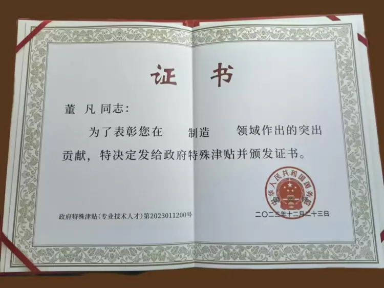 截至目前,董凡已入选国家和省重大人才工程、国家科技创新创业人才、珠海十大英才,荣获国家科技进步二等奖、广东省科技进步一等奖、广东省五一劳动奖章、广东省优秀中国特色社会主义事业建设者等荣誉称号。本次入选国务院政府特殊津贴专家,是国家对董凡在科技创新和先进制造领域突出贡献的高度认可。