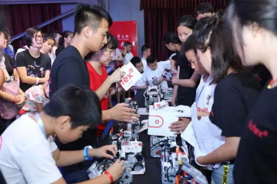 当天活动现场,赛场上的小朋友们各自拿出自己已经编程好的机器人充满信心的放在指定区域;赛场下,家长们围坐在场边为自己的孩子加油呐喊;主舞台 上,两位解说的目光都聚焦在这几场即将开始的比赛。来自国内各地的小选手们无疑是即紧张又刺激。