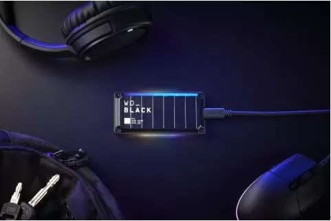 WD_BLACK P40游戏移动固态硬盘提供了500GB至2TB*多种容量版本,可保留更多游戏更新和大型游戏,让玩家随时备战,开启游戏之旅。产品采用USB 3.2 Gen2x2接口,读取速度高达2,000MB/s1,助力玩家快速闯关制敌。Windows用户可以下载WD_BLACK仪表板,自定义RGB灯效,彰显个人风格。此外,WD_BLACK P40支持iPhone 15 / Plus文件传输,以及iPhone 15 Pro / Pro Max的HD高清视频直连拍摄。加上坚固的抗震结构,该产品可承受高达2米的跌落冲击,不怕失手跌落到地面。其轻巧便携的设计,不仅方便I人在夏日宅家畅玩,还可以方便他们携带心爱的游戏库,到朋友家一同奋战。