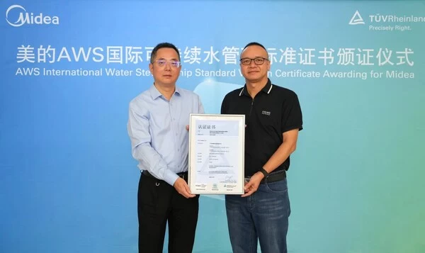 此次认证过程中,美的集团家用空调事业部充分展示了其持续推动可持续水管理的五大成果,涵盖了完善的水管理制度、可持续的水平衡、良好的水质、健康的重要水相关区域、安全饮用水与卫生设施等。通过认证的广州华凌制冷设备有限公司和广东美的制冷设备有限公司积极开展生产运营水资源管理,从源头节水,并实现制造端产生的废水循环利用目标。