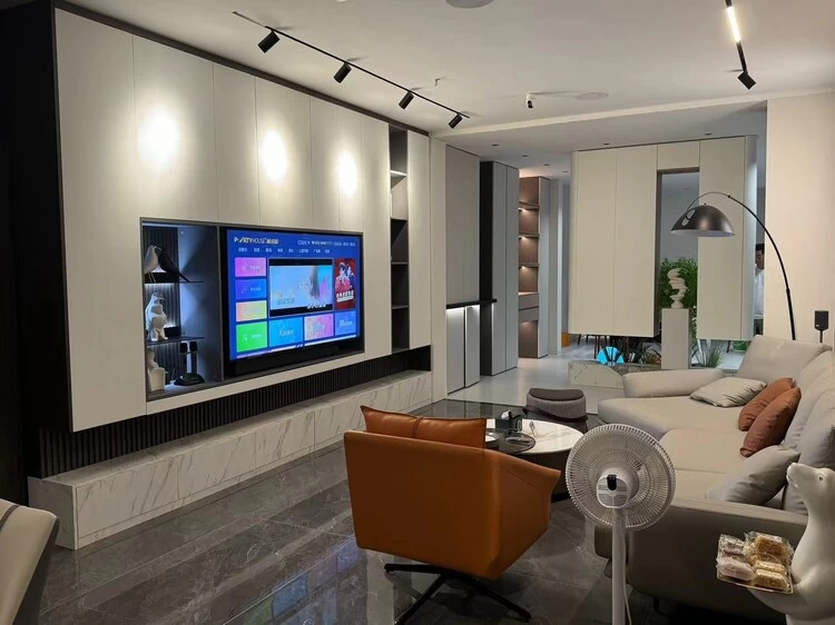 电视墙简洁美观,不仔细看都发现不了soundbar/回音壁摆放在何处,即便是小编这样细心的人,在第一次看到这个体验空间的时候,也没找到soundbar/回音壁的踪迹。